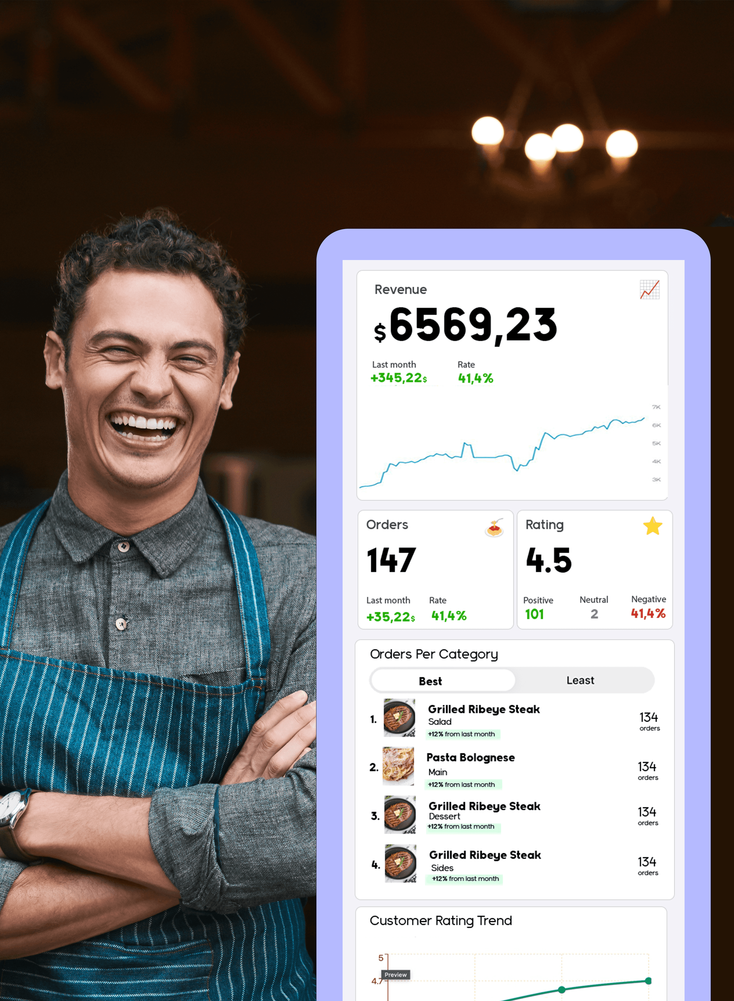 Απλοποιούμε τις λειτουργίες σας και επιταχύνουμε την ανάπτυξή σας, βοηθώντας να αυξήσετε τα περιθώρια κέρδους. Έτσι μπορείτε να επικεντρωθείτε σε αυτό που πραγματικά έχει σημασία καλό φαγητό, καλές στιγμές και αυθεντικές σχέσεις με τους πελάτες σας.