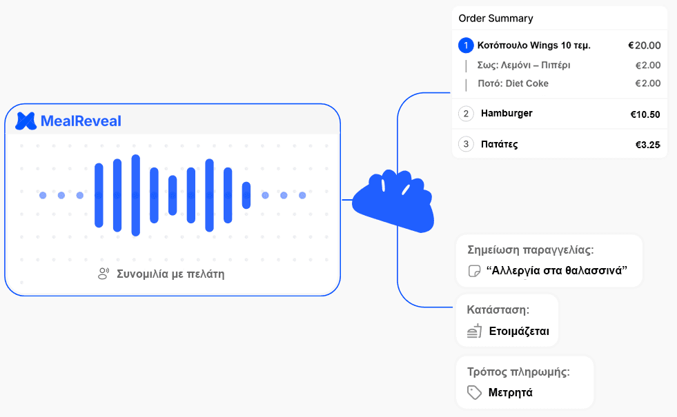 Κάθε αλληλεπίδραση μετράει. Η προηγμένη λύση Voice AI διασφαλίζει ότι το εστιατόριό σας δεν θα χάσει καμία κλήση.